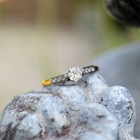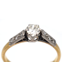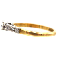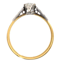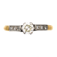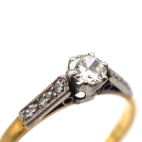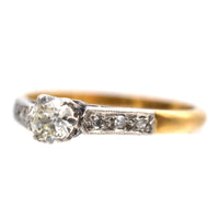Art Deco 18ct Gold & Platinum, Diamond Solitaire Ring with Diamond Shoulders